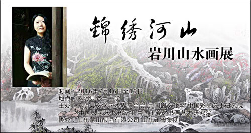 崮文化网讯 为庆祝中国共产党成立95周年,展现伟大时代波澜壮阔的锦绣河山,回报沂蒙父老乡亲,中国“最具潜力的山水女画家”岩川,在崮乡山东蒙阴举行个人山水画展览。
