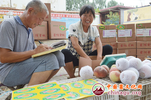 崮文化网讯 7月10日,蒙阴县常路镇圣景社区郑峰和老伴在儿子的网店里包装蜜桃、写快递单,他种植的大红袍蜜桃,通过搭上电商“快车”,每公斤卖出了16元的好价钱。