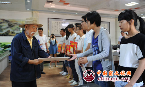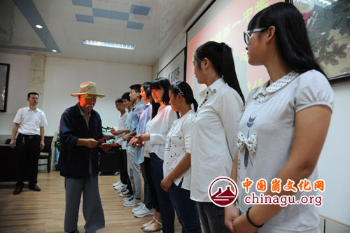 宋连生老人向孩子们发放“加油卡”,鼓励他们好好学习。丁军国摄