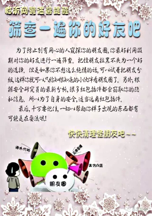 临沂网警温馨提醒:筛查一遍你的好友吧