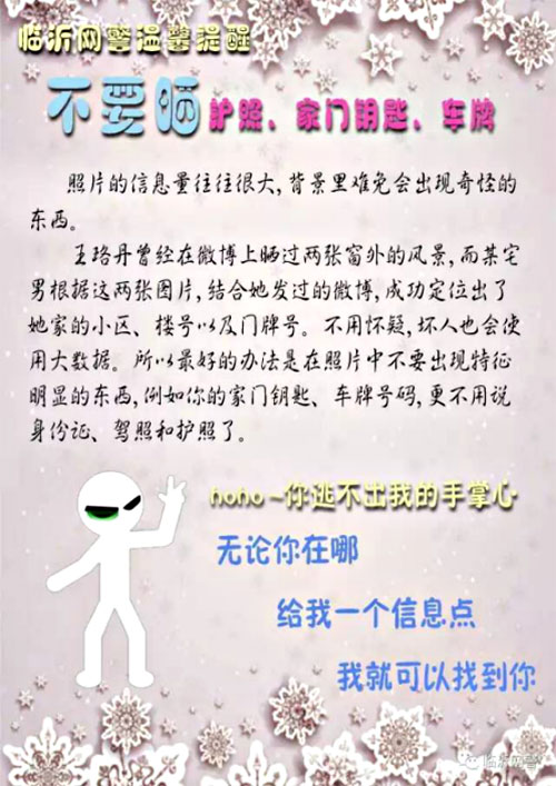 临沂网警温馨提醒:不要晒护照、家门钥匙、车牌