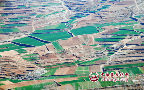 我们在巨石上拍照、留影。发现有块绿油油的麦田,特别招人喜爱——我们熬过了荒凉的冬季,乍一见到青青的麦苗,爱意油然而生!