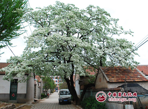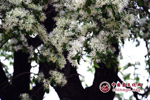 近日,在蒙阴县坦埠镇中心中学校园内,一棵生长100余年的流苏树,枝头缀满琼花,放眼望去,直如敷霜盖雪,云堆碎玉,沁人的芳香溢满整个校园,成为附近一大景观。(丁军国 摄)