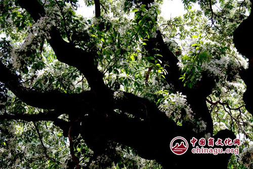 这棵树龄300多年的流苏(俗名油根子),近日开出满树银花。花香随风飘移,数里之外能闻到香味,前来参观的游客络绎不绝。