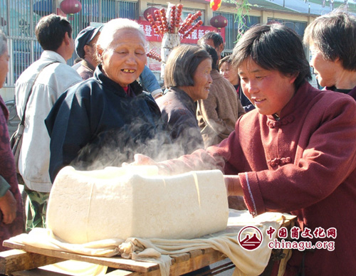 今天,岱崮豆腐加工已形成以豆腐为主的系列名吃。豆浆:浓郁纯正,清香扑鼻,味道纯美,是美容、保健佳品。豆脑:其状如脑,其味纯正,口感细嫩味美,百吃不厌。豆腐皮:岱崮豆腐皮成长形圆卷,柔软耐嚼,香味特别。冻豆腐:将豆腐冷冻后化开,使豆腐形成丝网状,用其炖肉、炖丸子,香味独异。小豆腐:用豆糊和蔬菜或野菜,加工成小豆腐,清香可口,营养价值丰富。岱崮豆腐系列名吃,在讲究效率、崇尚保健的今天,越来越受到人们的青睐。(张淏然)