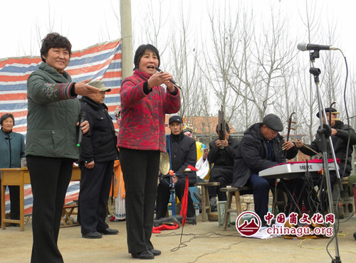 崮文化网讯 12月2日,在蒙阴县常路镇常路社区文化大院里,正在演出的是该镇西下庄村金皇山艺术团新编的《打金枝》。没有专业设备,也没有华丽的服装,演员都是当地村里人。台上悠扬的唱腔不时引起台下观众的阵阵掌声、铿锵的锣鼓声和人们的欢笑声,荡漾在整个山村。 西下庄村金皇山艺术团组建于2005年10月,坐落在村北金皇山脚下,该艺术团因金皇山而得名,(古传因金凤凰降落村北小山山顶,起名金皇山,至今山顶还保留凤凰庙遗址。)辖设乐队、戏曲演唱队、歌曲演唱队、老年秧歌队、青年舞龙队、青年八手灯队、少年舞狮队。为传承民间文化艺术,该艺术团组建以来,演出的剧目主要除了农民喜爱的传统古装剧外,还编排了群众喜闻乐见的文艺节目,以歌舞、戏曲、小品等形式,宣传党的好政策给人民群众带来的富裕生活,唱说新人新事,他们常年走村串户,把节目送到村,送到农民家门口,用他们的歌声和舞蹈演绎着新农村生活的美好和幸福。据了解,剧团成立7年来,已在全县义务演出400多场次,平均每年为群众演出60多场次。 73岁的赵洪金大爷是其中最积极的戏迷,除了种菜、收庄稼,听戏成为他生活中最大的乐趣。 他高兴的对笔者说:“俺庄里这个节目演得很好,都愿意听,都愿意看,在电视上看不着。” 今年50多岁的公茂荣原来就是个戏迷,上了年纪后,很少出门。自从参加了“艺术团”的表演队,现在只要有文艺演出活动,不管家里农活再忙再急,撂下就往艺术团里跑,那冲劲,一点不减当大姑娘时。 艺术团团长李万成说:“现在我们编排了30多个节目,包括戏曲、秧歌、舞狮、小品等。一有空就走村串户,把节目送到农村,送到农民家门口。同时我们代表镇里参加了县里举办的第二届、第三届广场文化艺术节汇演,少年舞狮队连续两年获集体优秀表演奖,老年秧歌队在今年2月份,在临沂市第十二届民间秧歌会表演中,荣获银龙奖。去年,艺术团被山东省文化厅授予‘农村优秀文化团队’”。戏台搭在村子里,学戏唱戏的乡亲们也就越来越多,该艺术团也从原来的16人增加到60人,年龄最大的70岁,最小的12岁。他们白天干活,晚上排练,编排的节目以发生在百姓身边的故事为题材,说的是‘庄户话’,演的是‘庄户戏,’群众看了亲切,听着欢喜,不管走到哪里,都是一片叫好声。通过开办这些具有浓郁乡土气息的文艺活动,宣传了党的政策,推动了新农村文化建设,使“日出而作、日落而息”的农民享受到有滋有味的文化娱乐生活。 党的十八大召开后,金皇山艺术团围绕建成小康社会,又编排了20多个节目,白天忙农活,夜晚走村串乡搞义演,把精彩的节目送到农民家门口,给乡亲们带来了欢乐,活跃了农民文化生活。(张纪增)