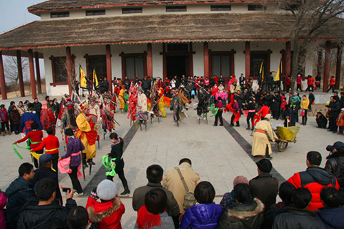 “小龙赐福到龙门,全民狂欢迎新春”。地处日照市东港区的龙门崮景区内大红灯笼高高挂起,成片的祈福红布条衬托出欢乐祥和的新年氛围,2013“好客山东,多彩日照贺年会”首届龙门崮春节文化庙会在这里正式拉开帷幕。庙会融合祈福活动、佛事活动、文艺演出、民俗娱乐、休闲购物等多项内容。
