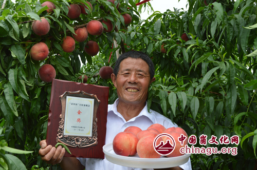 崮文化网讯 7月5日,在全国赛桃会上,有蒙阴县常路镇鸣兴果菜种植专业合作社选送的鲁红618蜜桃,获得金奖。鲁红618蜜桃是有临沂市“农村科技大王”公维焕经过3年的时间培育出来的,管理中采用的是疏层式管理新技术,从小树开始培养,树形整形简单,成形快,修剪简便,易于管理。结果早,产量高,亩栽110棵,二年挂果亩产800千克,三年亩产2500千克。由于这种树形枝枝向阳,果果见光,所产果实都是精品桃,个头大、色泽好、口感好、糖分高、耐阴性强、硬度极好,从成熟到采摘在树上半月不变软,成熟后全红。在赛桃会上,鲁红618以色泽、外型、口感、果肉硬度等指标的综合评比中,夺得金奖。(张纪增)
