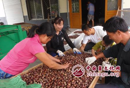 崮文化网讯 近日,随着宋家早、处暑红等早熟板栗品种进入采摘期,地处孟良崮下的蒙阴县垛庄镇板栗交易市场非常热闹,每天都有大量栗农从周边县乡赶来出售板栗,引来北京、河北、天津、内蒙古、黑龙江等全国20多个省、市、自治区的客商纷纷前来坐地收购。目前,垛庄镇板栗市场收购座商有50多家,日交易量60吨,优质板栗以每公斤9元左右的收购价销往国内各大中城市。(公维喜)